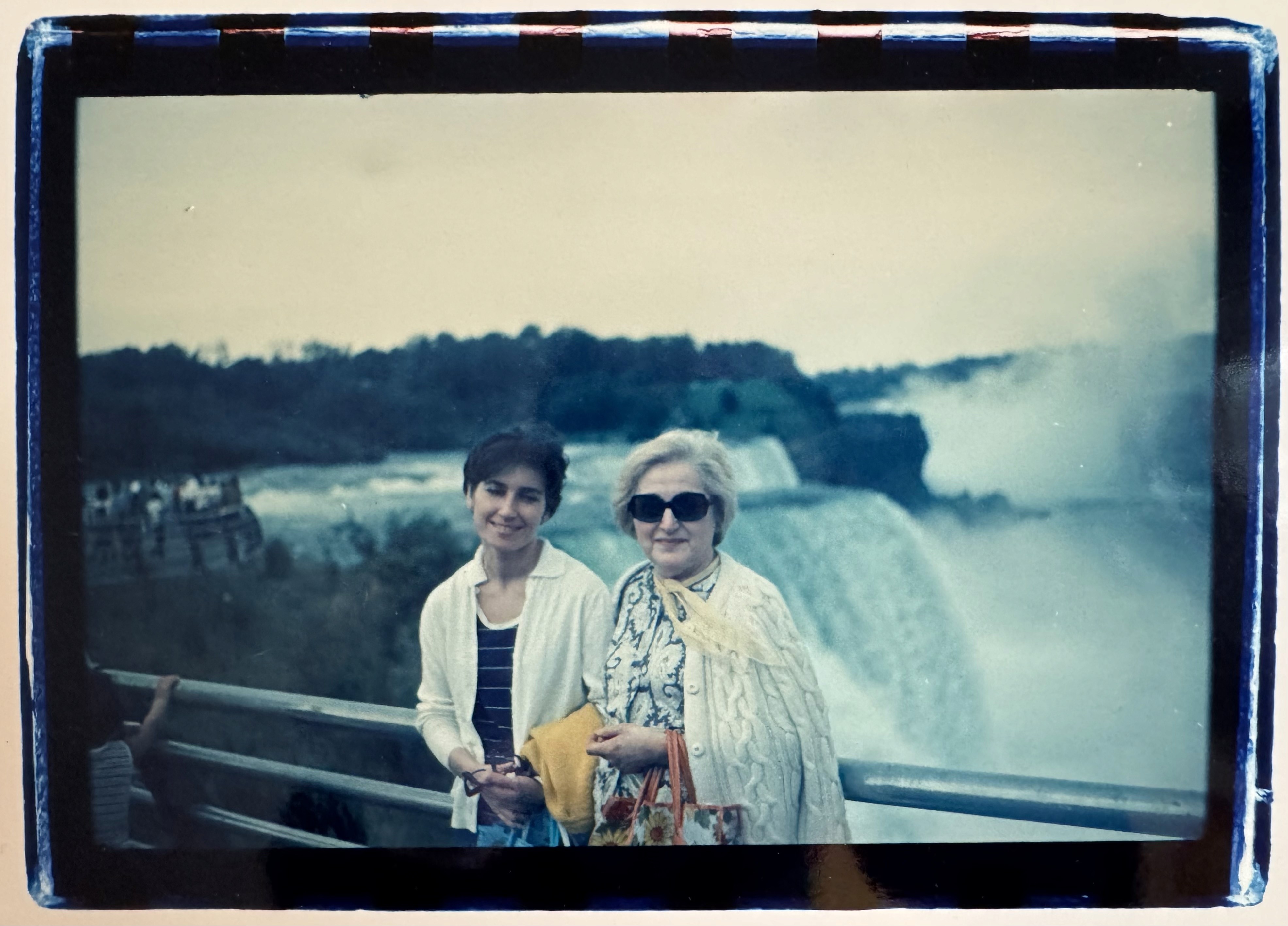 This is another photo he took: my mother and her mother at Niagara Falls. Something in this photo captures my mother's relationship to her mother in a way that seems obvious once you see it: the head inclined towards her, my grandmother's arm discreetly behind her daughter's back. There is a pride I can detect in my grandmother's pose; she told my mother once that she was the only one of her three daughters that she didn't worry about, even though she was all the way off in Canada.
